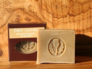Essential sage oil is used for desinfection and reduces the sweat production. In combination with the lavender oil we create a fresh and strong herbal soap.